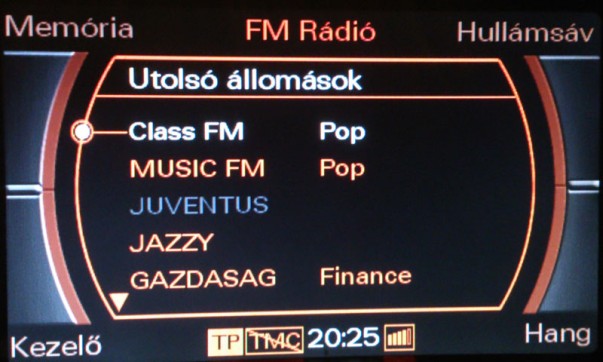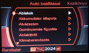 A vezető információs rendszeren (műszerfalon) azok az információk lesznek elérhetők magyarul, amelyeket az MMI rendszer küld át (pl.: telefon).