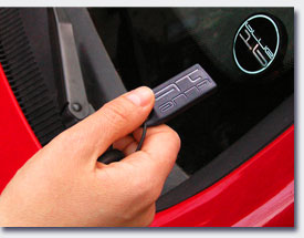 Riasztó be- és kikapcsolásaA szélvédőre ragasztott leolvasótekercshez, lehetőleg merőlegesen, 3 cm távolságon belül odatartott kulccsal lehetséges, így az autótolvaj nem tudja ellopni a távirányító jelét.